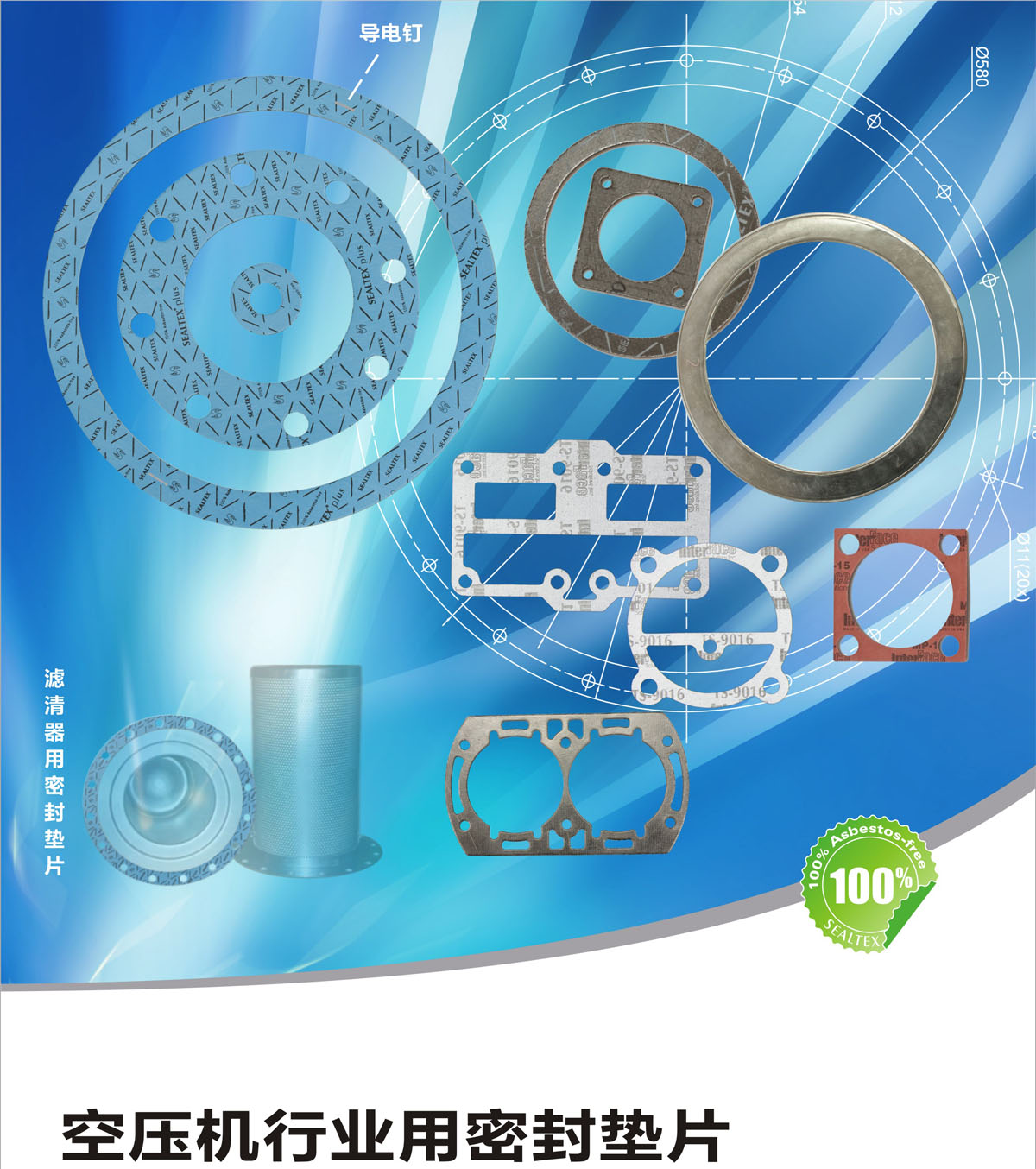 可應(yīng)用于活塞機、螺桿機等各類壓縮機中的空氣濾清器、機頭、閥板、曲軸箱、軸承蓋、進(jìn)排氣口、油漆桶、油路等部分的密封。