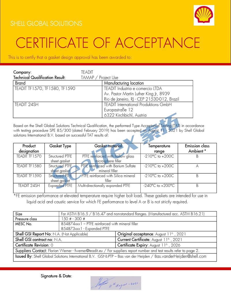 TEADIT密封材料獲得石化巨頭殼牌SHELL認(rèn)可 TEADIT/泰迪密封材料獲得石化巨頭殼牌SHELL認(rèn)可 涉及到的產(chǎn)品型號(hào)有:TEADIT TF1570, TF1580, TF1590,TEADIT 24SH 等 上一個(gè) 返回列表 下一個(gè)