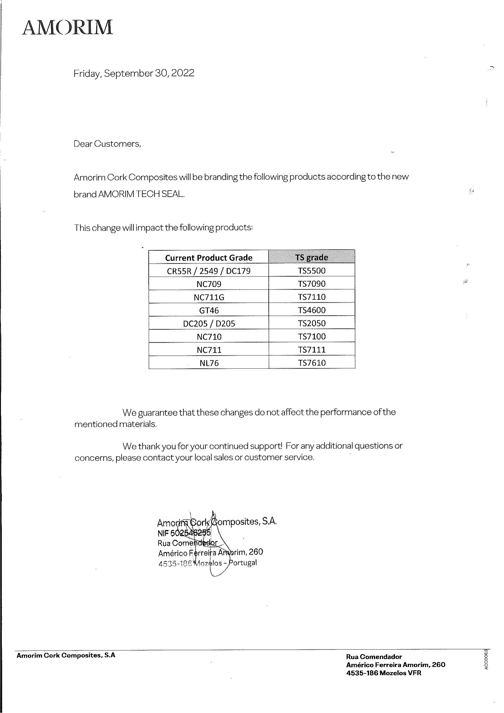 Amorim Cork Composites將按照新的品牌AMORIM TECH SEAL對(duì)材料進(jìn)行推廣。