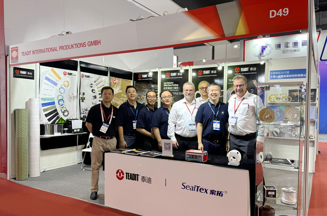 本次展會展出了帶有TEADIT® TAGTM 標記的低逸散性可追溯盤根2848,以及API 622 測試平均泄漏率僅為2ppm、ISO 15848-1 密封級別A的2236盤根;多款膨體四氟和改性四氟材料,例如:24SH膨體四氟,TF1570\TF1580\TF1590改性四氟,以及各種符合BAM氧氣測試、PFAS Free,適用于超低溫工況、低泄漏等要求的密封產(chǎn)品。