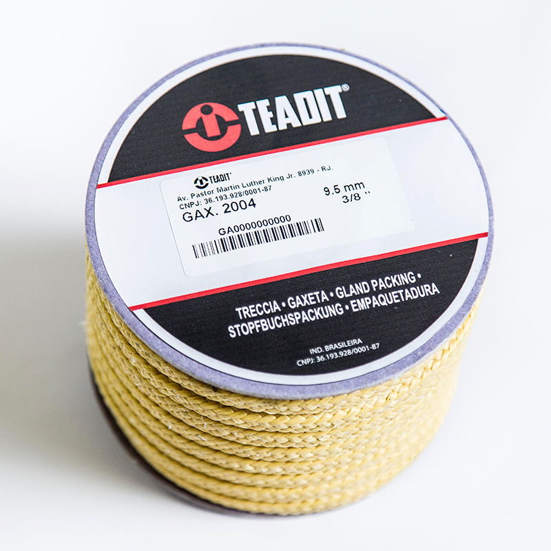 磨蝕性介質(zhì)芳綸或酚醛纖維等材料能提供理想的耐機械性能.TEADIT Style 2004 對角編織芳綸纖維浸漬PTFE和高溫硅油盤根。