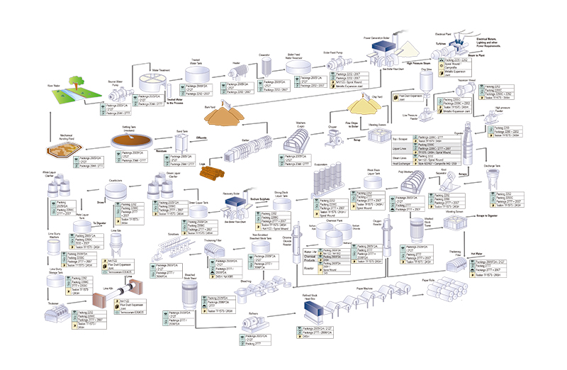 TEADIT泰迪的過(guò)程裝備密封技術(shù)可應(yīng)用于造紙全流程中的各種專業(yè)設(shè)備,如:鍋爐給水泵、脫氧器、水源泵、繩結(jié)分離器、石灰漿清洗機(jī)等造紙裝備中,能有效減少停機(jī)時(shí)間并降低維護(hù)成本。