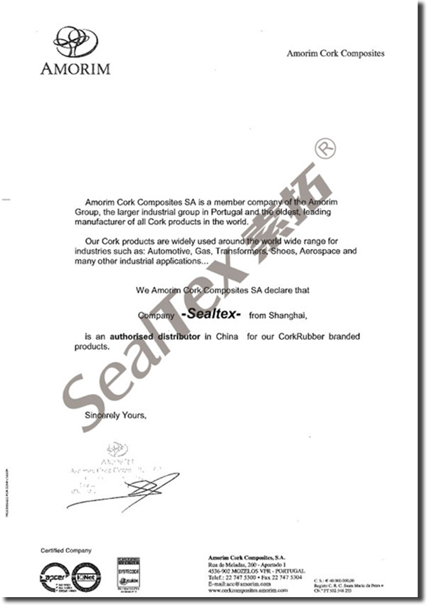 上海一柯索拓密封材料有限公司為AMORIM阿莫林在中國(guó)的總代理