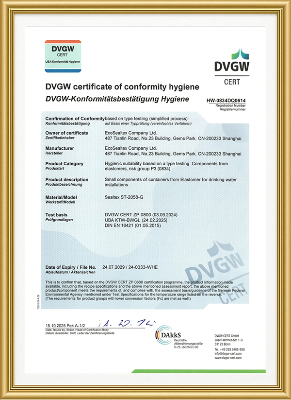 SealTex無石棉密封材料獲KTW-BWGL 飲用水認(rèn)證